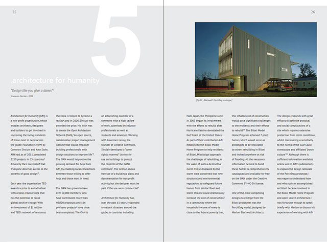 As part of the final year of undergraduate study at the University of Edinburgh a dissertation project is to be undertaken. The theme of 'open source architecture' was pursued and the project centered on the notion of open source philosophy applied to architectural practice.