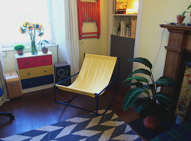 Muller Van Severen's first rocking chair inspired this project in which an homage to the minimalist deign was made on a minimal budget. The project took no more than a weekend to fabricate and included techniques from welding to needlework.