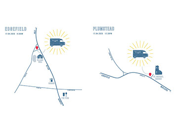 He needed graphic identity for this new business, and fast. Along with a logo, clear maps of where he would be stopping were essential for residents to find his service.